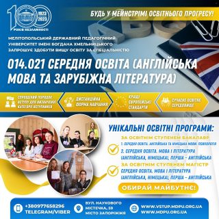 Обирай спеціальність 014.021 СЕРЕДНЯ ОСВІТА (АНГЛІЙСЬКА МОВА ТА ЗАРУБІЖНА ЛІТЕРАТУРА):