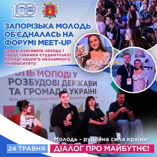 Минулого тижня в Запоріжжі відбувся форум MEET-UP, який об’єднав активну небайдужу молодь. Основним меседжем заходу стали теми молодіжного лідерства, залучення молоді до участі в громадському житті, програми та послуги молодіжних центрів.