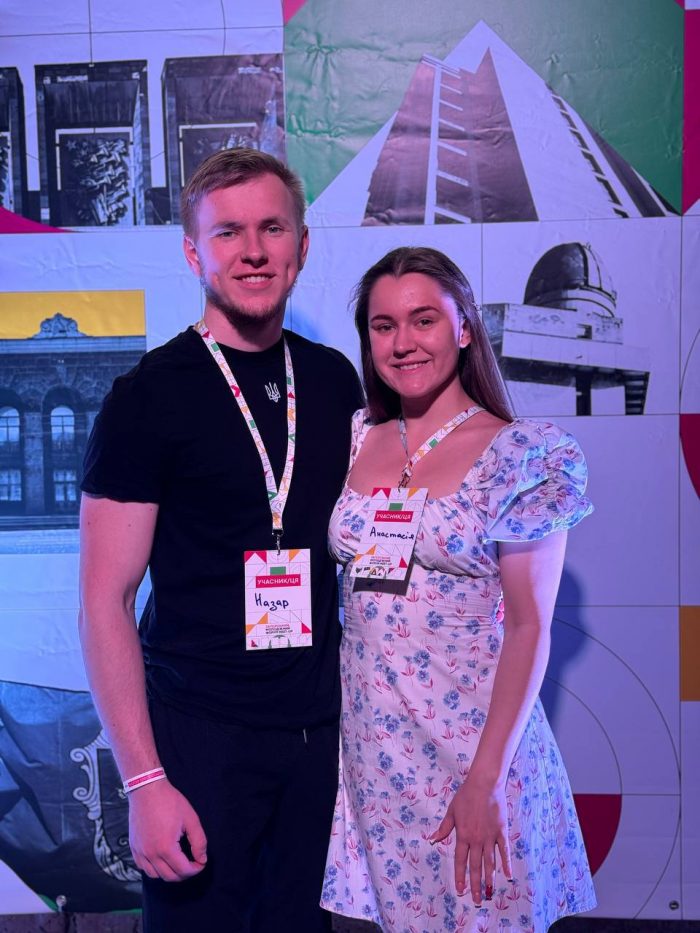 Прогресивну молодь МДПУ імені Богдана Хмельницького представили голова студентської ради університету Назар Розумейко та викладач-стажист кафедри початкової та спеціальної освіти Анастасія Сухомлінова.