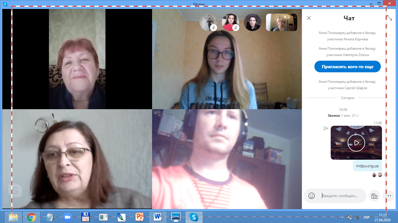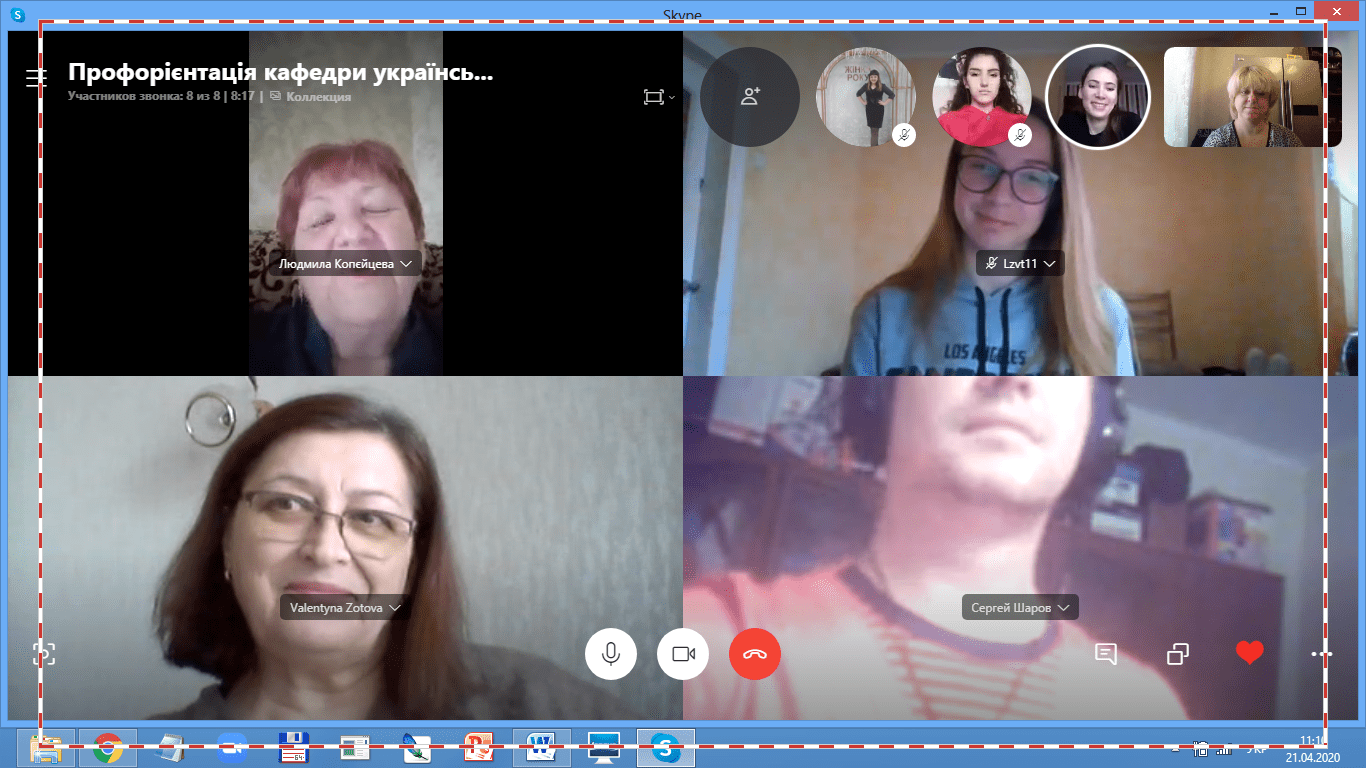 21.04.2020 р. об 11.00 викладачами кафедри української і зарубіжної літератури (к. філол. н., доценти Т.М. Шарова, Л.П. Копєйцева, к. пед. н., доцент В.Г. Зотова, к. пед. н., доцент С.В. Шаров) у Skype режимі проведено профорієнтаційну бесіду з учнями ліцею № 19 на тему: «Як перетворити мрії у реальність».