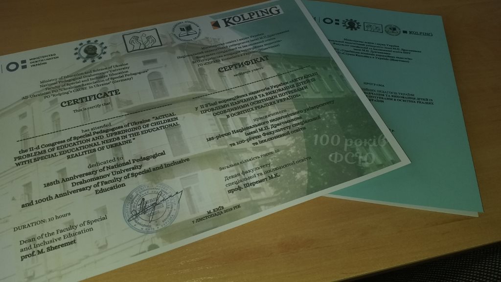 Актуальні проблеми навчання та виховання дітей із особливими освітніми потребами в освітніх реаліях України7 листопада 2019 р. членами проектної групи державної бюджетної теми «Розробка методології психолого-педагогічного супроводу сімей, які виховують дітей з особливими освітніми потребами» державний реєстраційний номер (0119U002003) Яковенко І. О. та Чорною В. В. було прийнято участь у ІІ З’їзді корекційних педагогів України «Актуальні проблеми навчання та виховання дітей із особливими освітніми потребами в освітніх реаліях України».
