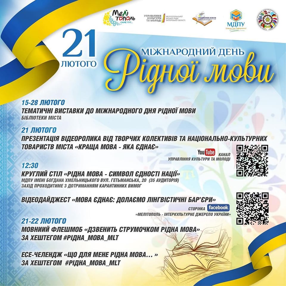 В рамках проведення Міжнародного Дня рідної мови пропонуємо Вам ряд заходів, які покликані підкреслити велич та силу мови кожної нації.