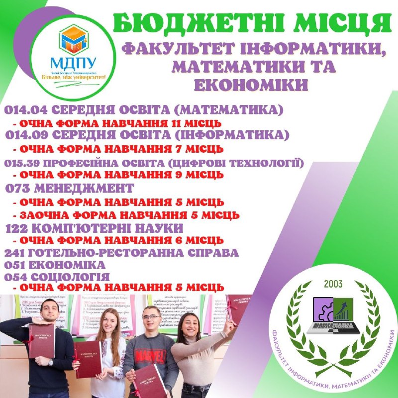 ОБСЯГ ДЕРЖАВНОГО ЗАМОВЛЕННЯ на факультеті інформатики, математики та економіки у цьому році становить майже 70 МІСЦЬ.