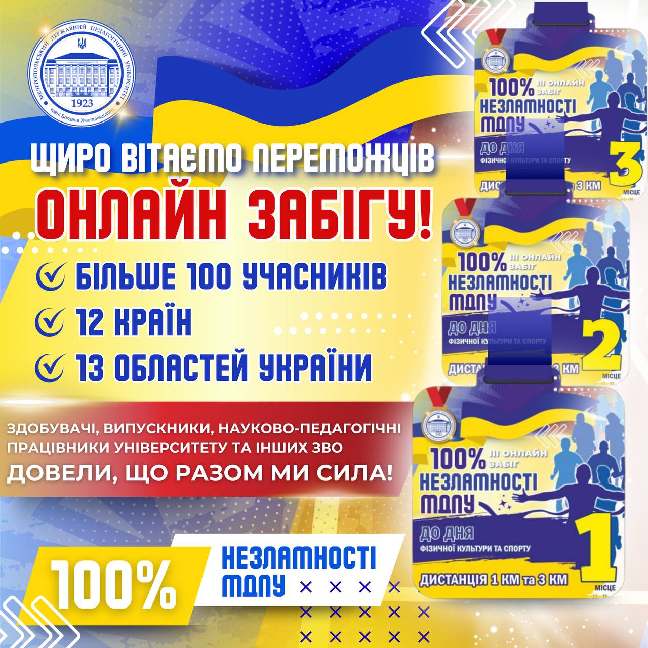 ⭐🏛️ З нагоди проведення заходів до Дня фізичної культури та спорту в МДПУ імені Богдана Хмельницького був проведений традиційний ІІІ онлайн забіг – «100% НЕЗЛАМНОСТІ МДПУ». 🌍🏆 Кількість і географія учасників просто вражає!‼️⭐ Більше 100 учасників зі всіх куточків України та світу‼️✅12 країн‼️🇺🇦13 областей України‼️👩🏻💻👨🏫Здобувачі, випускники, науково-педагогічні працівники університету, а також представники інших ЗВО України […]