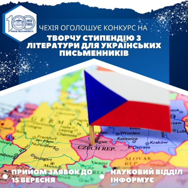 НАУКОВИЙ ВІДДІЛ ІНФОРМУЄ! Міністерство культури, Департамент мистецтва, бібліотек та креативних індустрій Чехії оголошує конкурс на творчу стипендію з літератури для українських письменників! Гранти надаються українським авторам для створення художніх творів, есеїв або художніх репортажів, які розповідають про Україну. Умови участі: 🔹 Стипендію надаватимуть письменникам, діяльність яких ускладнена війною 🔹 Заявник має бути громадянином України 🔹…