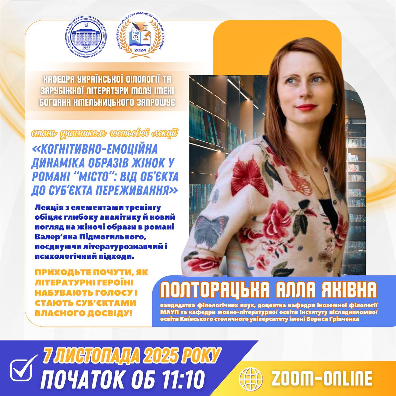 🎓💫 Кафедра української філології та зарубіжної літератури запрошує на зустріч із Аллою Полторацькою, кандидаткою філологічних наук, доценткою кафедри іноземної філології МАУП та кафедри мовно-літературної освіти Інституту післядипломної освіти Київського столичного університету імені Бориса Грінченка. 👩🏼💼⭐️ Алла Яківна — авторка циклу вебінарів «Мовленнєва культура в діяльності сучасного педагога», розробниця МНП «Українська мова. 5–9 класи», уроків із […]
