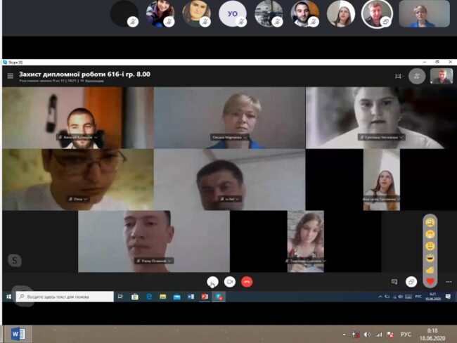 18.06.2020 на платформі Skype в режимі відеоконференції відбулась атестація студентів спеціальності 051 Економіка за освітньо-професійною програмою «Економіка та бізнес» у вигляді захисту кваліфікаційної роботи. Студенти підготували доповіді та презентації з тем дослідження. Кваліфікаційні роботи виконані на актуальні теми, враховуючи сучасні тенденції в економіці, а саме: «Розробка та обґрунтування бізнес-планування на підприємстві ПрАТ «Дніпроспецсталь», «Фінансова політика…