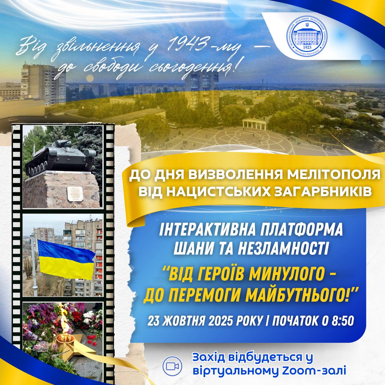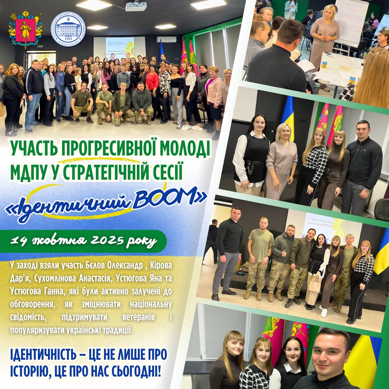 👥⭐️14 жовтня 2025 року у Запоріжжі пройшла стратегічна сесія «Ідентичний BOOM», що об’єднала понад 60 учасників — представників молодіжних рад, громадських організацій, бізнесу, органів влади, ветеранів та активну молодь. 🚀👏🏻Захід став майданчиком для діалогу, дії та формування бачення, як зміцнювати національну свідомість, підтримувати ветеранів і популяризувати українські традиції. 🏛️✅Мелітопольський державний педагогічний університет імені Богдана Хмельницького […]