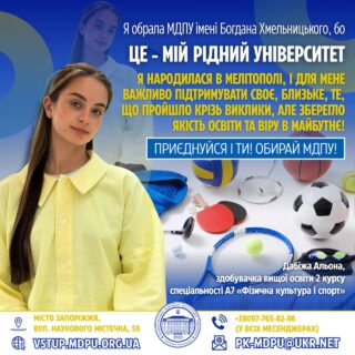 💬🧘🏼♀️«Я обрала МДПУ, тому що це — мій рідний університет. Я виросла в Мелітополі й бачу, як багато хорошого дали випускникам саме тут. Я вже працюю за фахом, тому чудово розумію: знання мають бути якісними, сучасними, живими. У МДПУ я відчуваю, що навчаюсь не для оцінок, а для реального життя. А ще — тут навчають із душею».