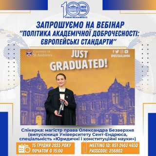 Олександри Безверхньої – магістерки права, випускниці Університету Сент-Ендрюса, спеціальність «Юридичні і конституційні науки».