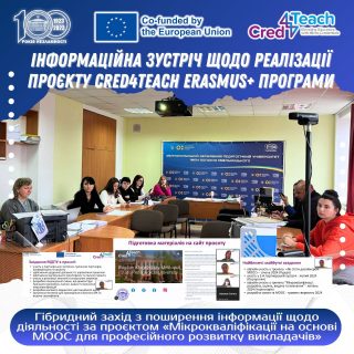 Сьогодні, 20 грудня, в Мелітопольському державному педагогічному університеті було проведено гібридний захід з поширення інформації щодо діяльності за проєктом «Мікрокваліфікації на основі MООС для професійного розвитку викладачів» (“MOOC-based micro-credentials for teacher professional development”) серед науковців та викладачів університету.