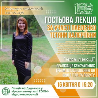 Кафедра психологія Мелітопольського державного педагогічного університету імені Богдана Хмельницького запрошує здобувачів вищої освіти стати учасниками гостьової лекції на тему: