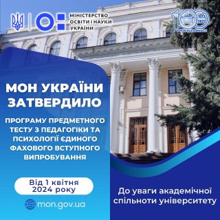 Міністерство освіти і науки України ЗАТВЕРДИЛО ПРОГРАМУ ПРЕДМЕТНОГО ТЕСТУ З ПЕДАГОГІКИ ТА ПСИХОЛОГІЇ ЄДИНОГО ФАХОВОГО ВСТУПНОГО ВИПРОБУВАННЯ