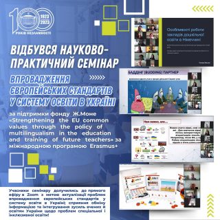 за підтримки фонду Ж.Моне «Strengthening the EU common values through the policy of multilingualism in the education and training of future teachers» за міжнародною програмою Erasmus+пройшов 11 квітня 2024 року в онлайн форматі за участі науково-педагогічних працівників, аспірантів та здобувачів