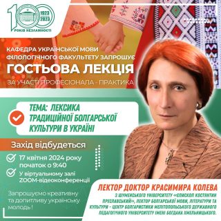 Кафедра української мови анонсує гостьову лекцію «Лексика традиційної болгарської культури в Україні».