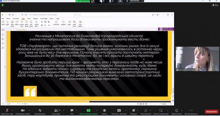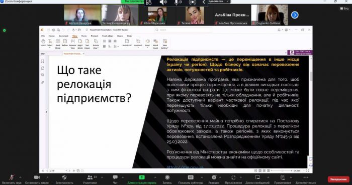 В рамках зустрічі відбулася дискусія щодо проблем функціонування релокованих підприємств, значення і використання дієвих механізмів їх підтримки з боку держави і місцевої влади, особливостей прийняття управлінських рішень в умовах війни.