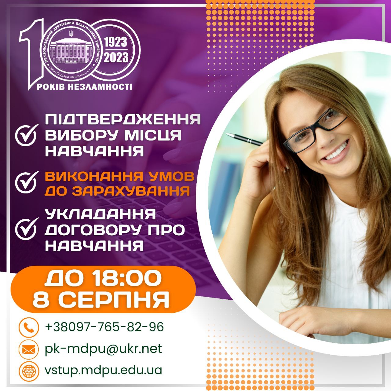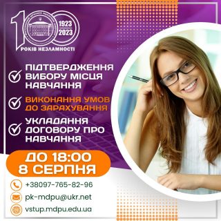 До уваги вступників! Що потрібно для зарахування на місця державного замовлення до МДПУ імені Богдана Хмельницького?