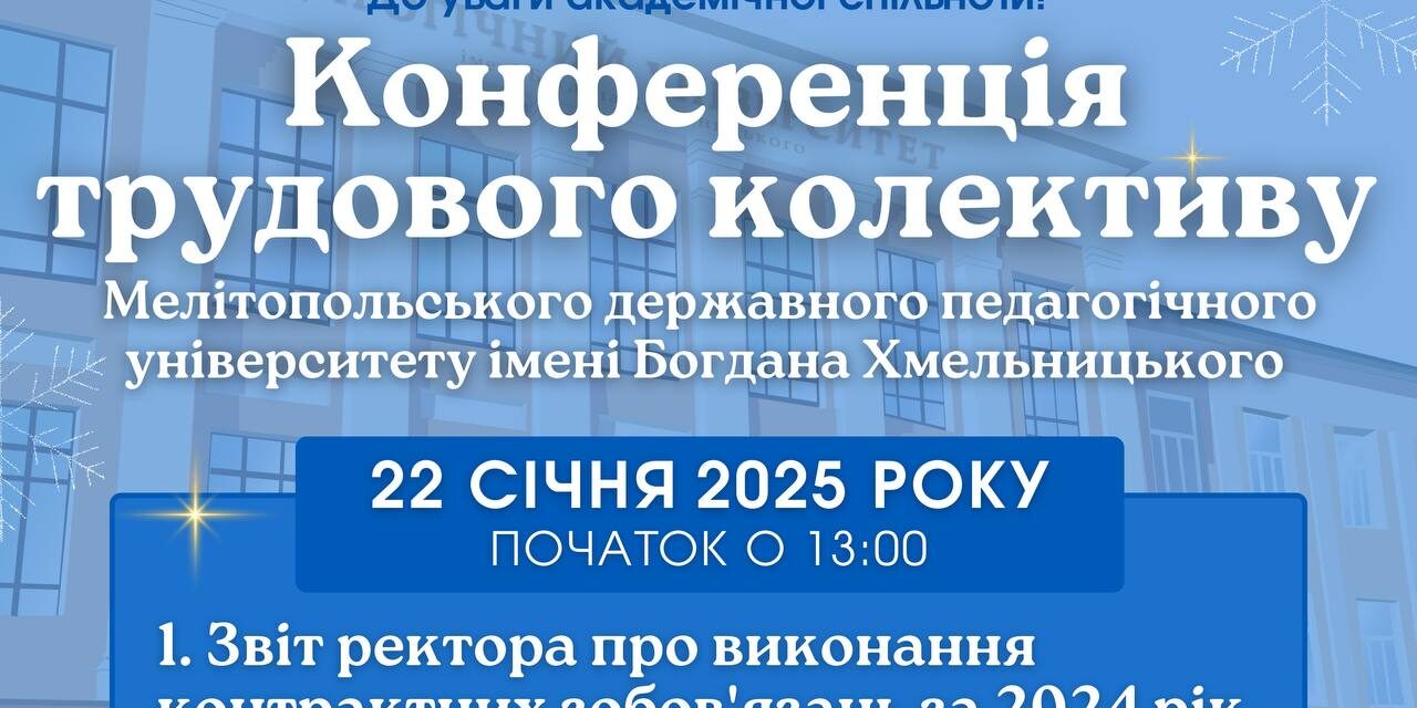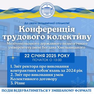 ✅📝22 січня 2025 року о 13:00 відбудеться конференція трудового колективу Мелітопольського державного педагогічного університету імені Богдана Хмельницького