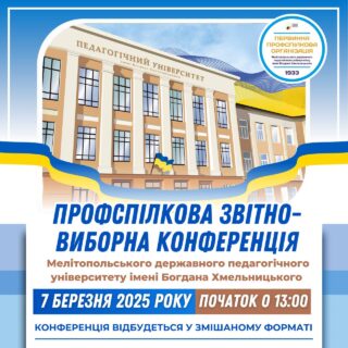 ✅📝7 березня 2025 року о 13:00 відбудеться Профспілкова звітно-виборна конференція Мелітопольського державного педагогічного університету імені Богдана Хмельницького