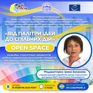 🇪🇺🤝🏻У рамках реалізації Проєкту Ради Європи «Підтримка реформування законодавчої бази щодо національних меншин та зміцнення стійкості національних менших і ромів в Україні», за підтримки Мелітопольської міської ради, сприяння Центру соціологічних досліджень, МДПУ імені Богдана Хмельницького, відритого простору допомоги «Саме ТУТ. Запоріжжя» запрошуємо стати учасниками
