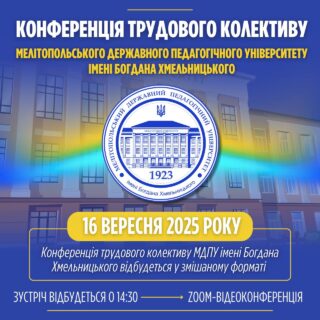 ✅📝16 вересня 2025 року о 14:30 відбудеться конференція трудового колективу Мелітопольського державного педагогічного університету імені Богдана Хмельницького.