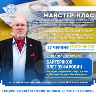 🗺️📚 Кафедра географії та туризму МДПУ імені Богдана Хмельницького в рамках IІI Міжнародної науково-практичної конференції здобувачів вищої освіти і молодих учених «Євроінтеграційні орієнтири інноваційного наукового пошуку молоді України» запрошує стати учасником майстер-класу