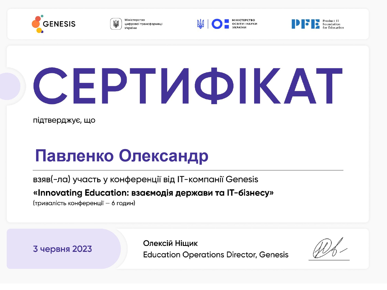 3 червня 2023 року українська IT-компанія Genesis провела першу конференцію Innovating Education для освітян, які активно впроваджують цифрові технології в освітню практику.