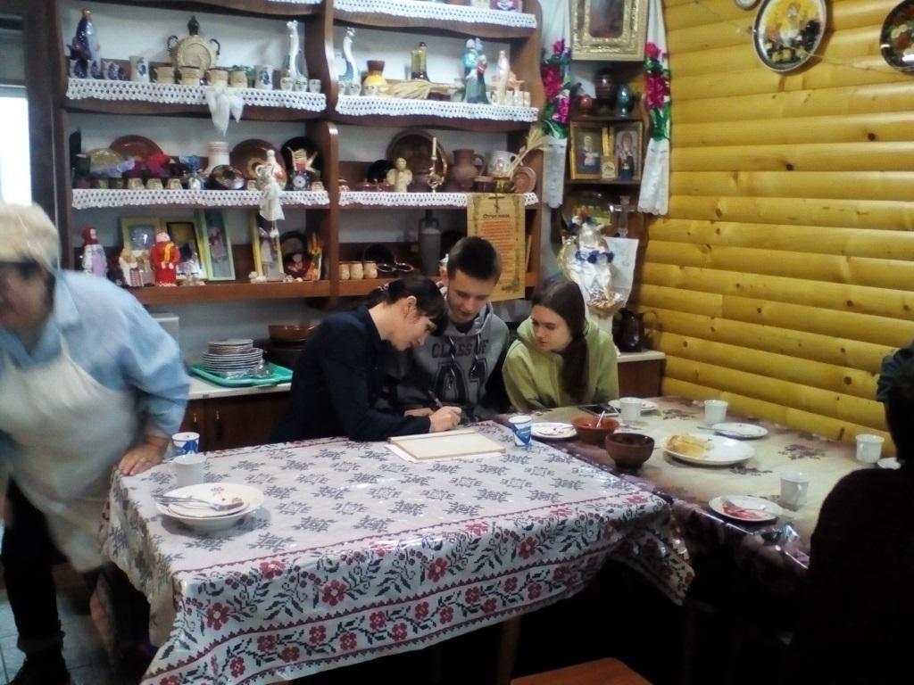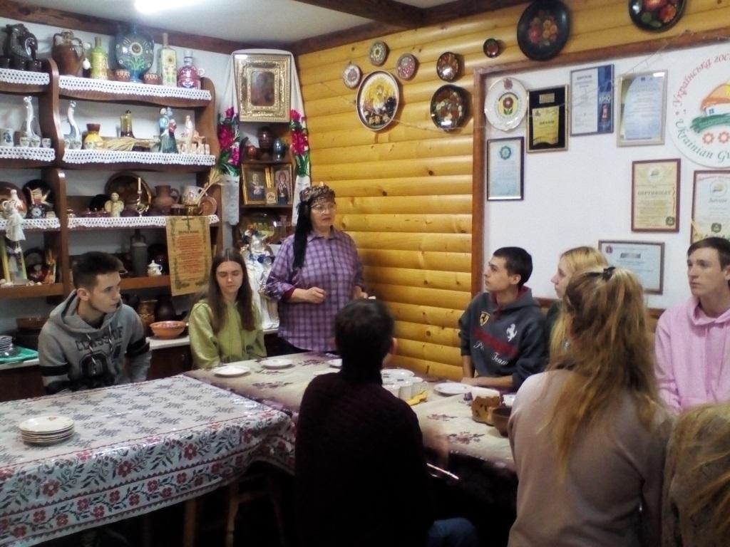 Екскурсію проводила власниця садиби Валентина Андріївна Єрмак. Під час екскурсії студенти дізналися про історію створення садиби, про послуги, які надає садиби та пройшли майстер-клас по випіканню млинців.