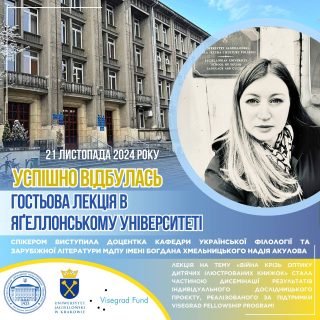 🏛️💫21 листопада 2024 року доцентка кафедри української філології та зарубіжної літератури МДПУ імені Богдана Хмельницького Надія Акулова виступила перед студентами закладу україністики Яґеллонського університету (Краків, Польща).