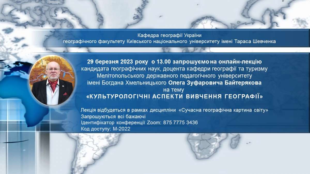 ГОСТЬОВА ОНЛАЙН-ЛЕКЦІЯ В КИЇВСЬКОМУ НАЦІОНАЛЬНОМУ УНІВЕРСИТЕТІ ІМЕНІ ТАРАСА ШЕВЧЕНКА НА ТЕМУ «КУЛЬТУРОЛОГІЧНІ АСПЕКТИ ВИВЧЕННЯ ГЕОГРАФІЇ»