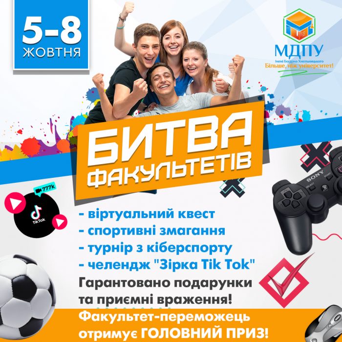 🔺 5-8 жовтня віртуальний квест на головному сайті університету mdpu.org.ua ( заходьте на сайт-шукайте підказку-виконуйте завдання-отримуйте бонуси до скарбниці факультету);