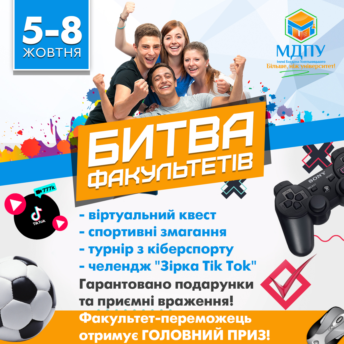 🔺 5-8 жовтня віртуальний квест на головному сайті університету mdpu.org.ua ( заходьте на сайт-шукайте підказку-виконуйте завдання-отримуйте бонуси до скарбниці факультету);