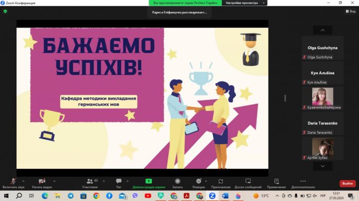 Викладачами кафедри методики викладання германських мов та кафедри германської філології було детально розглянуто структуру іспиту, пояснено його формат та надано практичні рекомендації щодо виконання завдань.