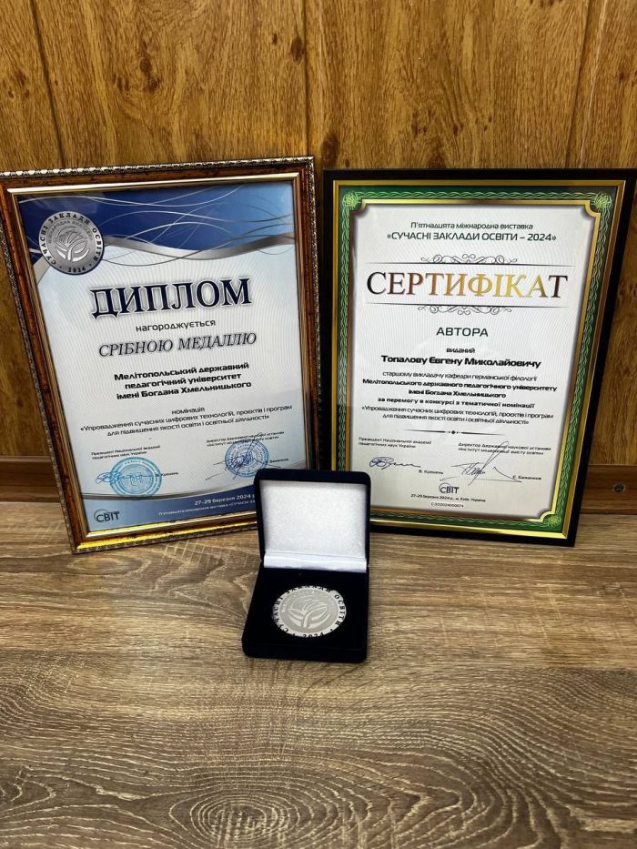 Третя інноваційна розробка «Використання подкастів для формування в учнів старших класів компетентності в «real-life» аудіюванні» (автор – старший викладач Топалов Євген) була удостоєна СРІБНОЮ МЕДАЛЛЮ!