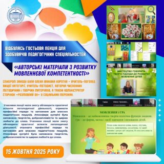 📆✅ 15 жовтня відбулася гостьова лекція для здобувачів педагогічних спеціальностей, яку провела Олена Іванівна Коротка — вчитель-логопед вищої категорії, учитель-методист, авторка численних методичних і творчих матеріалів, а також адміністратор сторінок «Розмовляй Ок» у соціальних мережах.