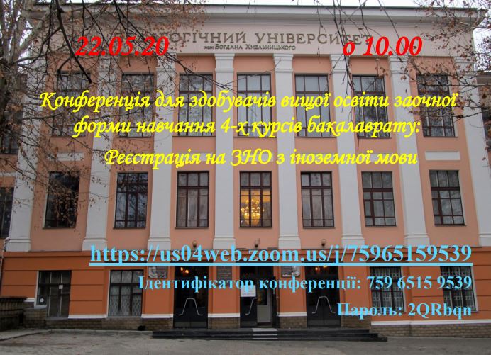 Для участі в навчальному процесі просимо вас ТЕРМІНОВО зареєструватись на сайті дистанційної освіти Мелітопольського державного педагогічного університету: dfn.mdpu.org.ua . Для реєстрації на сайті Центру освітніх дистанційних технологій вам необхідно заповнити гугл форму з наступною інформацією: ПІБ, E-mail, мобільний телефон. Після реєстрації ви отримаєте доступ до проведення лекційних та семінарських занять он-лайн викладачами університету. Розклад занять буде розташовано на сайті dfn.mdpu.org.ua та сторінці «Заочна форма навчання» сайту університету mdpu.org.ua.