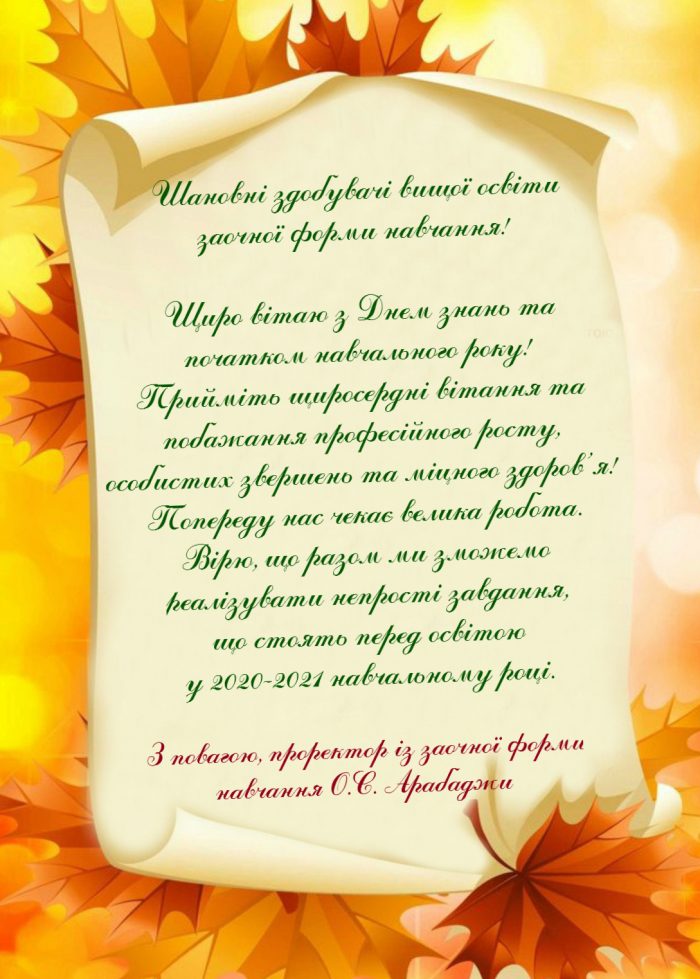 За всіма питання звертайтесь до проректора Олени Семенівни Арабаджи, ваших методистів та секретаря заочного відділу.