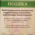 Співорганізаторами заходу був: Відділ культури Мелітопольської міської ради, Мелітопольська міська організація осіб з інвалідністю, МДПУ імені Богдана Хмельницького та інші.