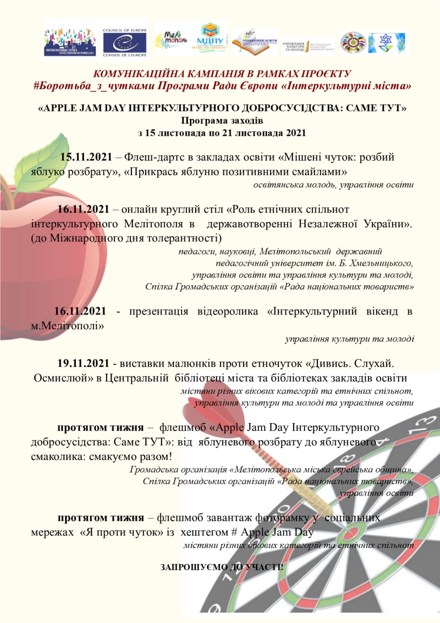 З 15 по 21 листопада інтеркультурний Мелітополь долучається до комунікаційної кампанії в рамках Проєкту “Боротьба з чутками” Програми РЄ ІСС.