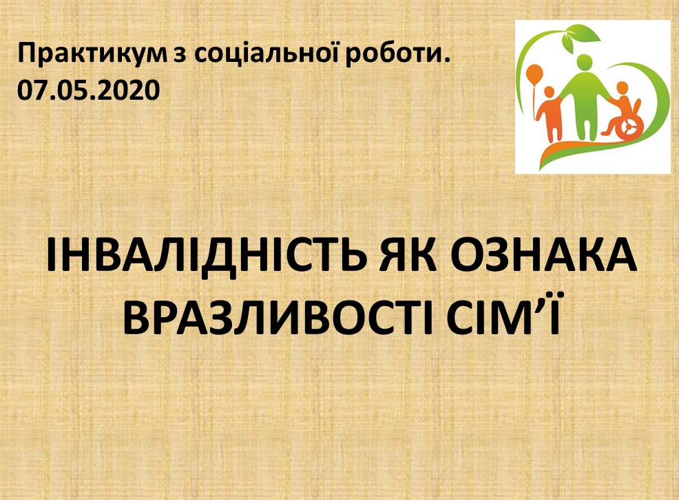 7 травня 2020 р. відбулося практичне заняття з дисципліни «Практикум з соціальної роботи» для здобувачів IV курсу спеціальності Соціальна робота (викладач асистент Єрьоміна Л.Є.).