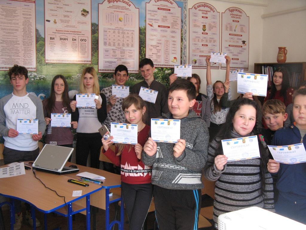 Першим було проведено тренінг для учні 6-11 класів. Діти виконали вправу «Хмаринка» та класифікували медіа на традиційні і нові; проаналізували «Моє медіаполе»; жваво обговорювали причини медіаграмотності; визначили, що означає бути медіаграмотним; створили ментальну карту небезпек у мас-медіа у середовищі онлайн дошки Padlet; знайшли вихід із складних ситуацій, які можуть виникнути через зловживання соціальними мережами; дізналися чи загрожує інтернет-залежність; розібралися з поняттями «факт» і «судження» та спробували самі створити інформаційне повідомлення в якому є факт і судження; познайомились як функціонують медіа на прикладі вправи «Намалюй тварину» та переконалися, що мас-медіа передають суб’єктивні думки, судження і не можна бути впевненими у достовірності інформації; познайомилися з поняттями «пропаганда», «маніпуляція», «джинса», «дезінформація» та потренувалися розпізнавати ці види інформації на готових прикладах; спробували себе у ролі журналістів та розробили пропагандистський плакат; взяли участь у іграх-енерджазерах для створення позитивного настрою під час тренінгу; переконалися як легко маніпулювати свідомістю; ознайомились з правилами перевірки інформації та наприкінці тренінгу отримали пам’ятки з правилами безпечної поведінки в інтернеті.