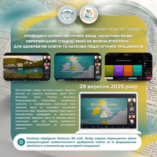 📝👤29 вересня 2025 року на факультеті суспільно-гуманітарних наук та права МДПУ імені Богдана Хмельницького було проведено інтеркультурний захід «Кельтські мови: європейський спадок, який не можна втратити» для здобувачів освіти та науково-педагогічних працівників.