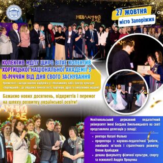 👥🇺🇦 Мелітопольський державний педагогічний університет імені Богдана Хмельницького на святі представляла делегація у складі: ректора Наталі Фалько, проректора з науково-педагогічної роботи, зовнішніх зв’язків і стратегічного розвитку Олени Арабаджи, а також декана факультету фізичної культури, спорту та психології Андрія Проценка.