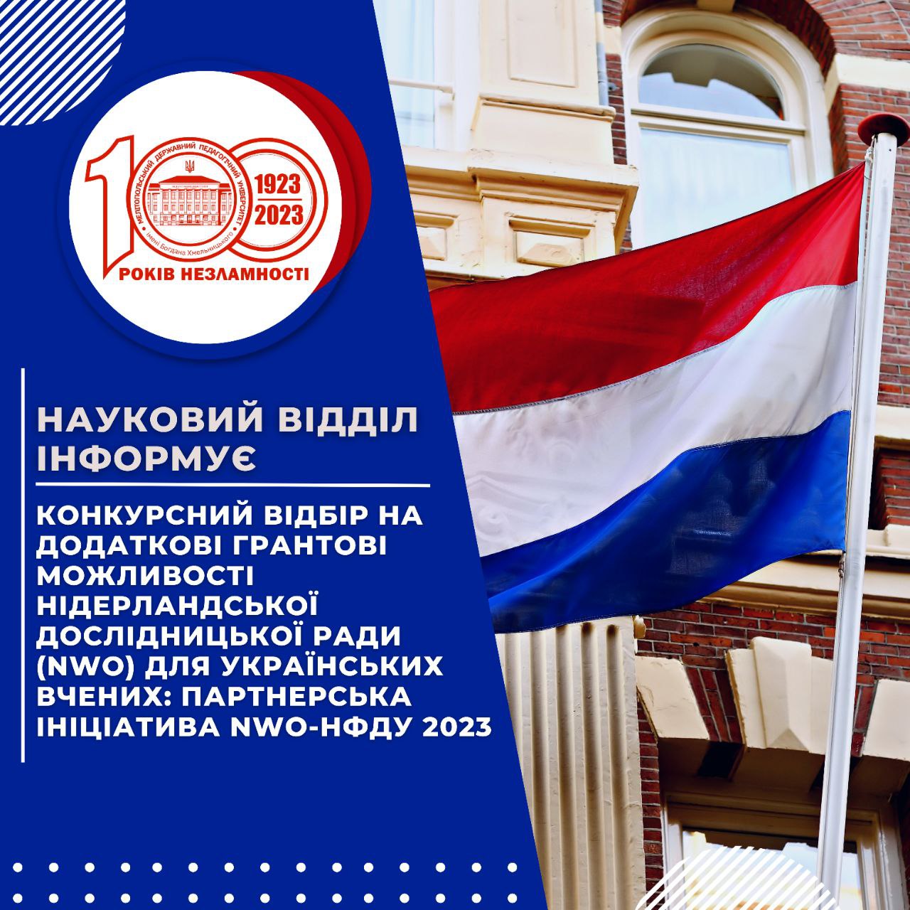 Конкурсний відбір на додаткові грантові можливості Нідерландської дослідницької ради (NWO) для українських вчених: Партнерська ініціатива NWO-НФДУ 2023.