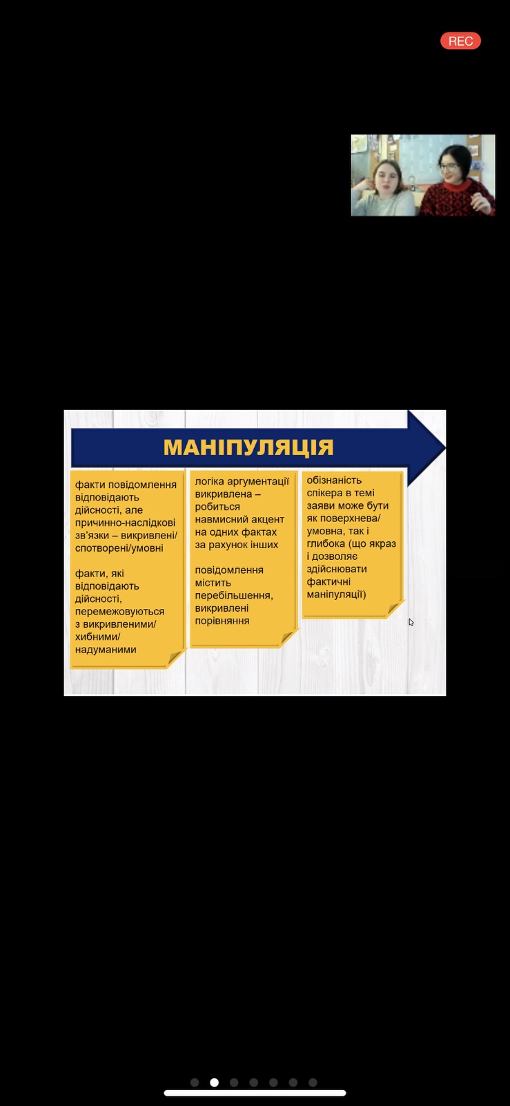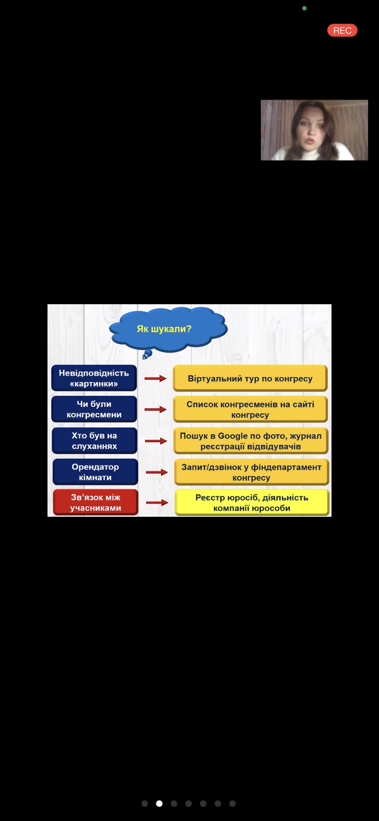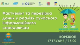 17 грудня 2020 р. старший викладач кафедри інформатики і кібернетики Ірина Наумук провела онлайн-воркшоп «Фактчекінг та перевірка даних у реаліях сучасного інформаційного середовища» для молоді міста Мелітополя. Учасникам воркшопу спочатку будо запропоновано огляд можливих маніпуляцій в інформаційному середовищі, основ фактчекінгу і конкретних варіантів грамотного споживання інформації. У другій частині заходу, відповідно до його форми, було організовано створення творчих звітів у невеликих групах. Під час воркшопу використовувались сучасні віртуальні технології, які дозволили учасникам розвинути вміння упевненої навігації як в інформаційному, так і в цифровому просторі.