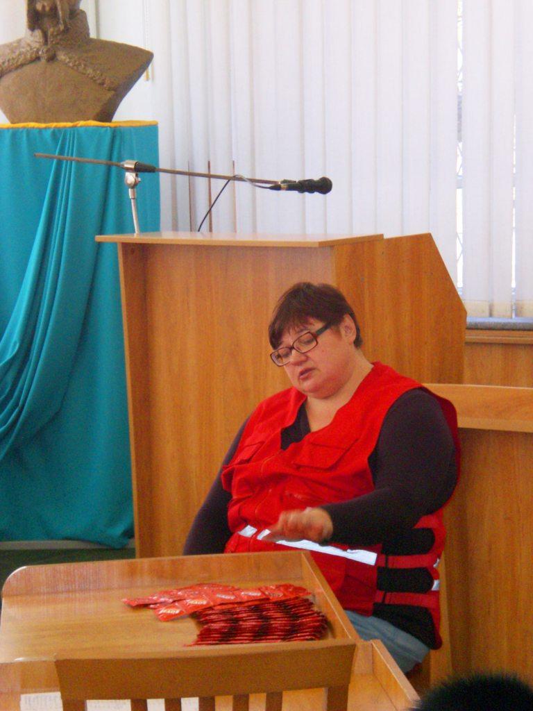 Світлана Миколаївна розповіла студентам про основні шляхи зараження страшною інфекцією, хто може бути найімовірнішим вірусоносієм. «Кожна людина повинна до кінця усвідомити всю небезпеку, яку несе СНІД, і зробити все можливе, щоб уберегти себе і своїх рідних та близьких від цієї страшної інфекції, бо СНІД може увійти практично в кожний дім, кожну сім’ю. Здоровий спосіб життя, чистота у взаєминах. – найкращі методи профілактики СНІДу.»