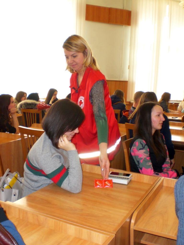 В якості запрошеного лектора до студентів приїхала волонтерка, медична сестра Мелітопольської організації «Червоний Хрест» Світлана Старигіна.