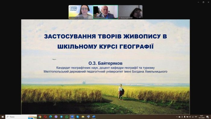 💡🎓географічного (60 годин, 2 кредити ЄКТС), які викладали науково-педагогічні працівники кафедри географії та туризму, – канд. географ. наук, доц. Байтеряков О.З., канд. географ. наук., доц. Гришко С.В., канд. географ. наук, доц. Донець І.А., ст. викл. Непша О.В.