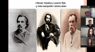 Розпочалися літературні читання зверненням М. Старицького до студентів поезією «До України» (уособлює драматурга М.Старицького здобувач вищої освіти ІІ М курсу 318 гр. Кара С.).