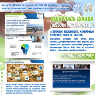 🏛️📚На кафедрі освітології та педагогіки мистецтва 3.06.2025 року для здобувачів і здобувачок третього (освітньо-наукового) рівня вищої освіти спеціальності 01 Освітні науки, відбулась гостьова онлайн-лекція: «Глобальні можливості: міжнародні програми, проєкти і гранти».